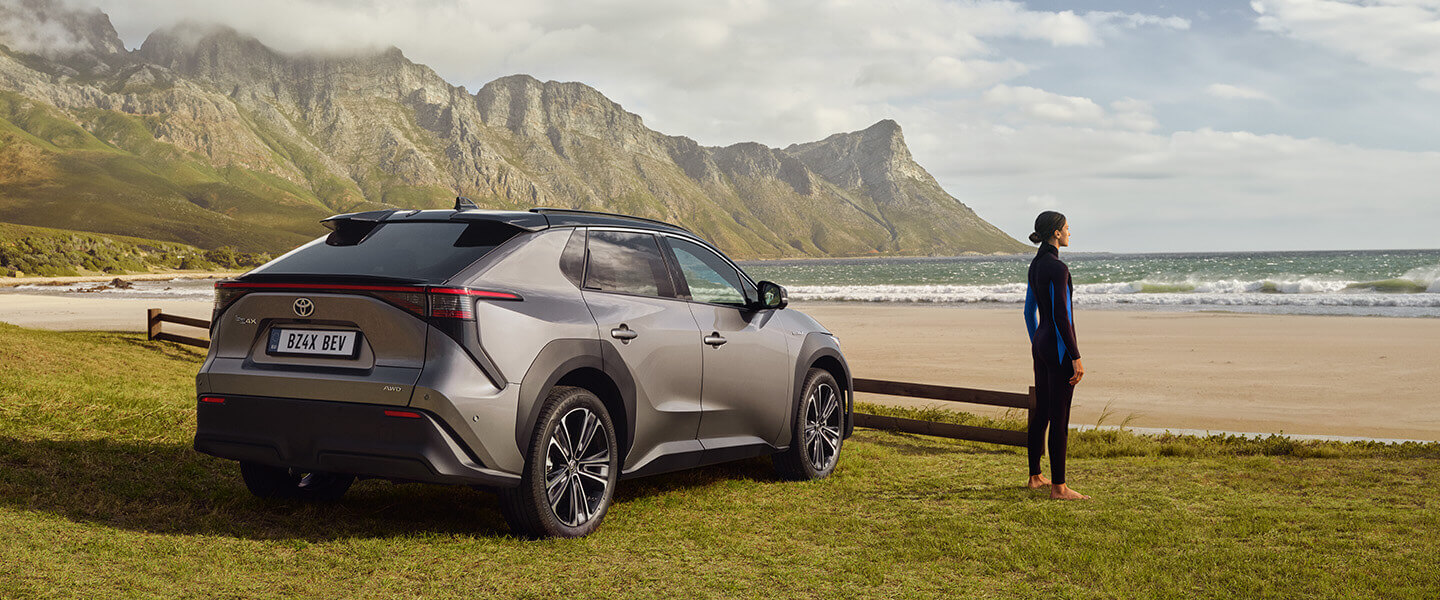 Våra elbilar, som Toyota bZ4X, kan med fullt laddat batteri köras upp till 500 km*.